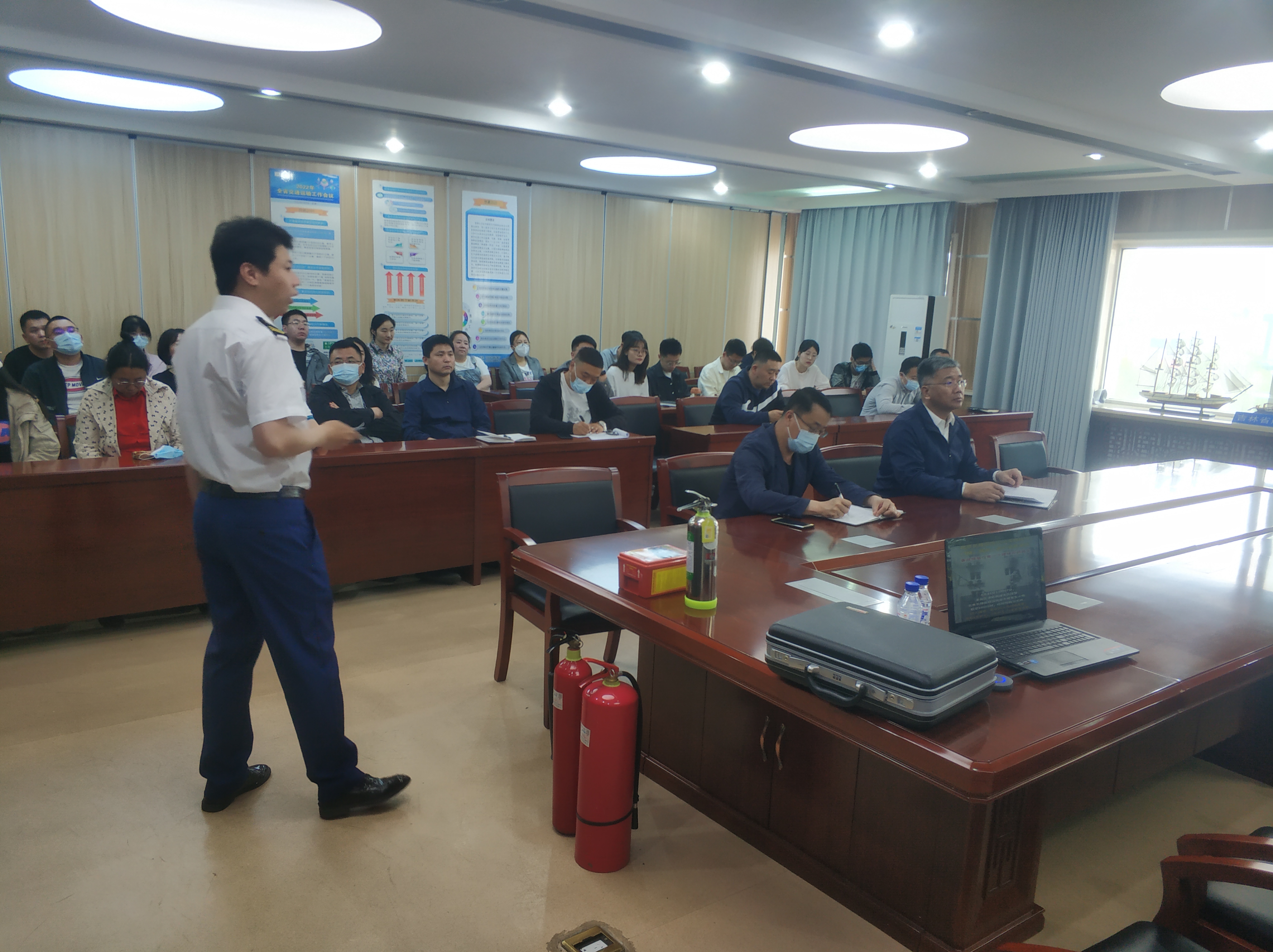 和省航道局2023年第二次安委会全体会议精神和2023年安全生产月活动部署,进一步提高职工消防安全意识和省航道局应急处置能力,6月5日,省航道局组织开展了消防培训、消防演练和溺水救援演练,局机关和吉林分局职工参加培训和演练。