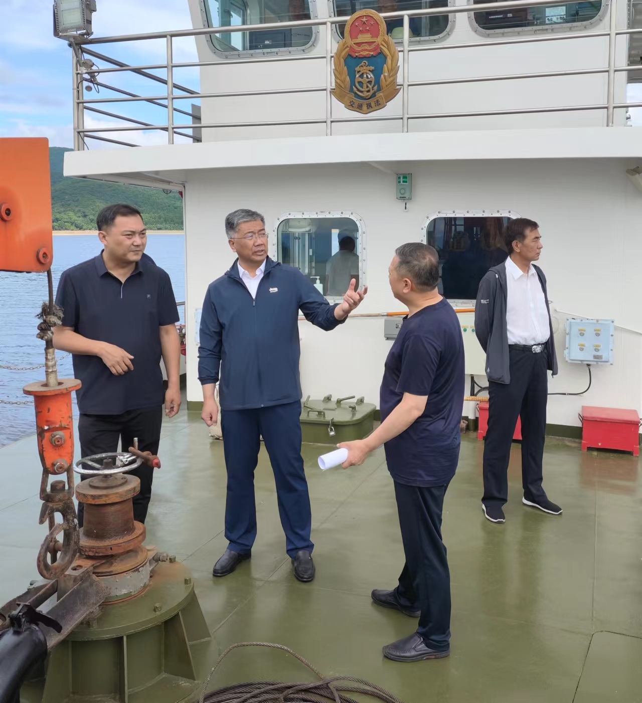 为确保“迎端午、保畅通”专项行动取得实效,端午节当天,局党委书记、局长齐晓鹏带队到松花湖库区,对旅游航道航标配布、航道通航安全情况进行现场检查,并与吉林分局一同对丰满大坝至五虎岛段15公里旅游航道开展养护工作。