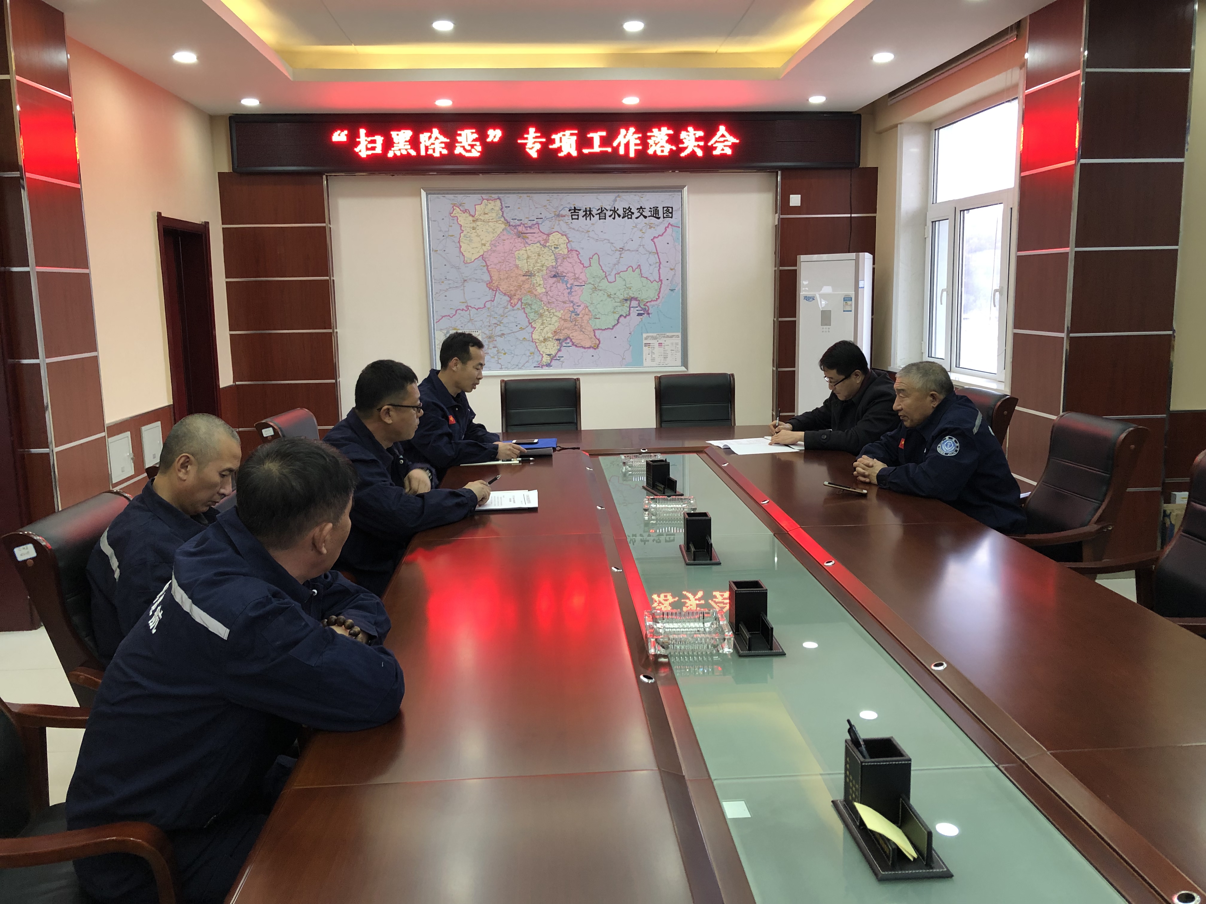 李华奎强调,我局为做好此项工作成立了扫黑除恶专项工作领导小组,齐晓鹏副局长任组长,局级领导任副组长,各部门领导为成员的领导组织机构,并下设办公室(扫黑办)。局里已经召开领导班子会议,专门就该项工作进行部署,同时局里印发了《扫黑除恶专项斗争应知应会手册》。我们要针对涉及到建设项目(含勘察设计)招投标、航道基础设施建设和养护施工、船舶建造、航道管理等工作中的围标串标、强买强卖、恶意竞争、恶意阻工、非法采砂、有组织地阻挠航道执法、私搭乱建与通航有关的临跨河建筑物等现象,深挖线索及时掌握证据。分局各位职工要高度重视,认真对待,把此项工作落实做牢,不得走形式走过场,不得有任何形式敷衍,从领导到职工要严格落实。紧密结合实际,切实把各项要求落实到扫黑除恶专项斗争各项任务当中,推进扫黑除恶专项斗争向纵深发展。
