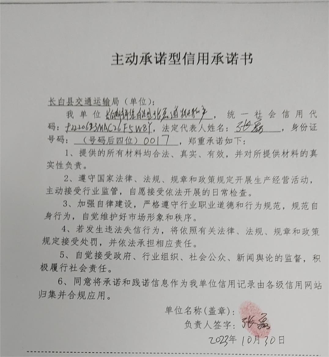 长白朝鲜族自治县胡平祥道路运输户